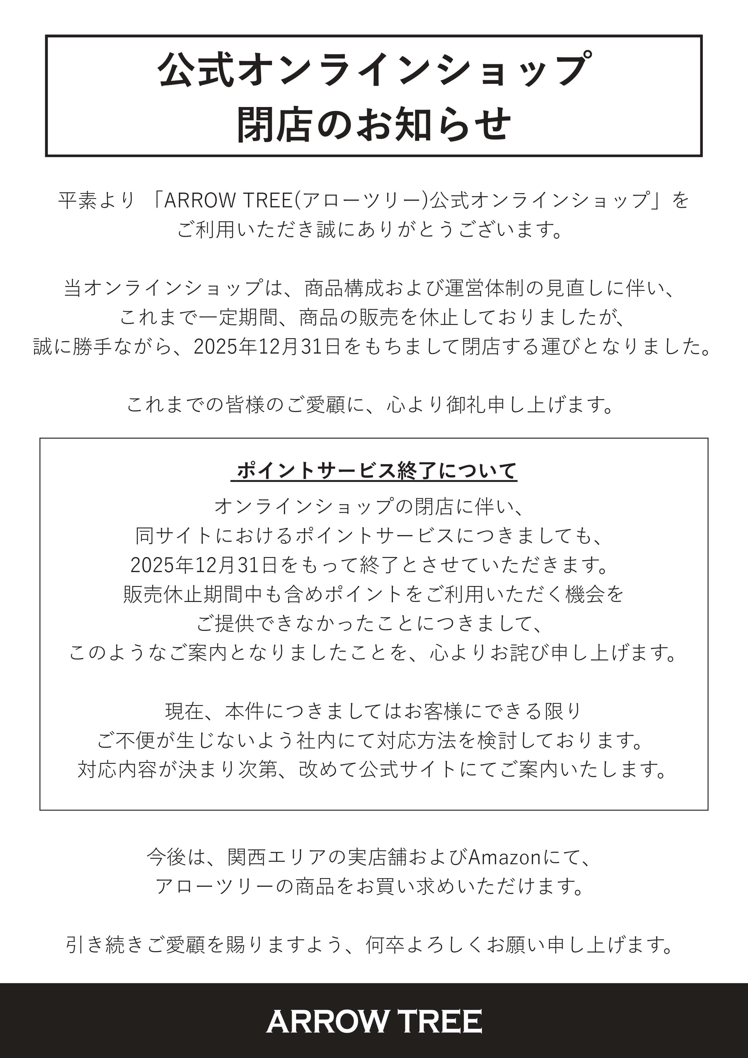 【閉店のお知らせ】アローツリー公式オンラインショップ