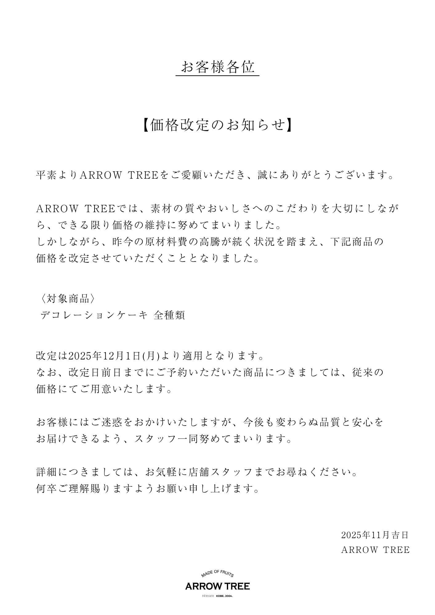 【お知らせ】一部商品価格改定のお知らせ