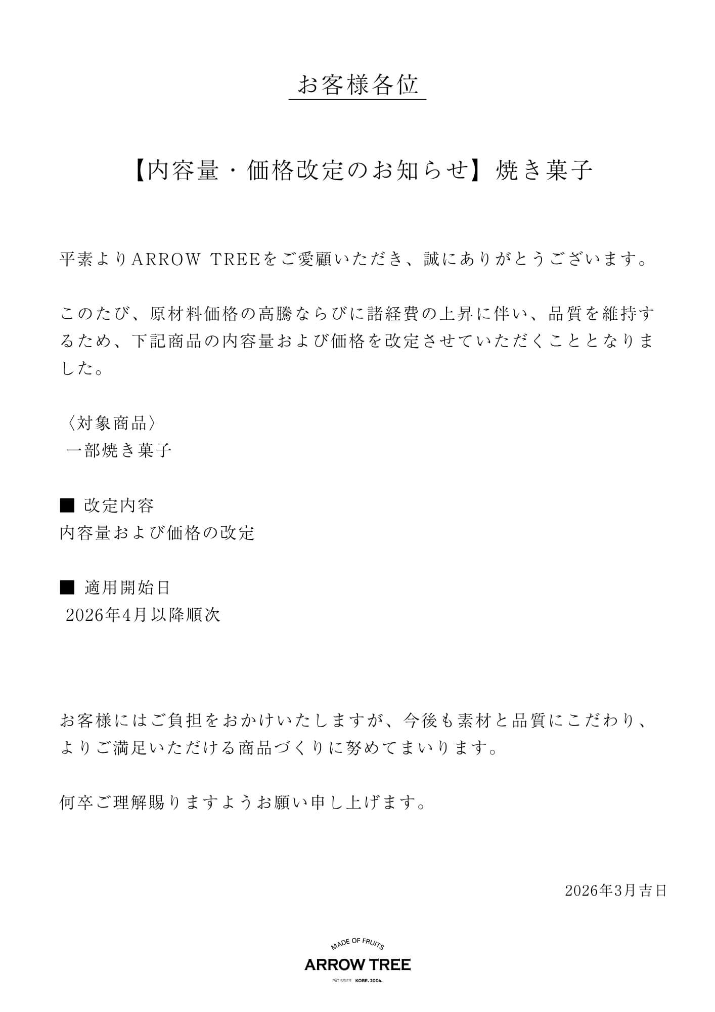 【お知らせ】焼き菓子 内容量・価格改定のお知らせ