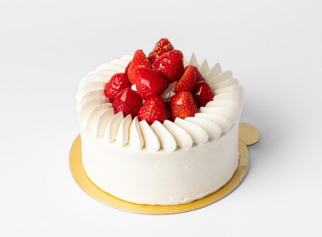 しっとりとした口どけの良いスポンジに、北海道産生クリームをブレンドした上品な甘さのオリジナルクリームを重ね、甘酸っぱい苺を贅沢にあしらいました。