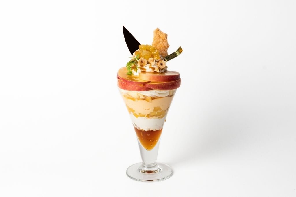 冬に旬を迎える紅玉りんごを贅沢に使用し、みずみずしさと香りを閉じ込めた季節限定のパフェです。